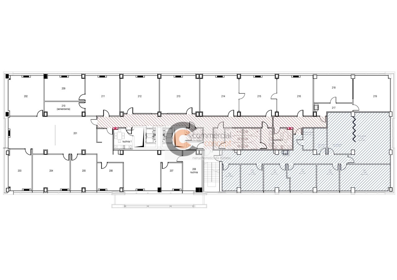 Kuchnia oraz toalety znajdują się w częściach wspólnych. Istnieje możliwość zmiany aranżacji i dostosowania pod najemcę.