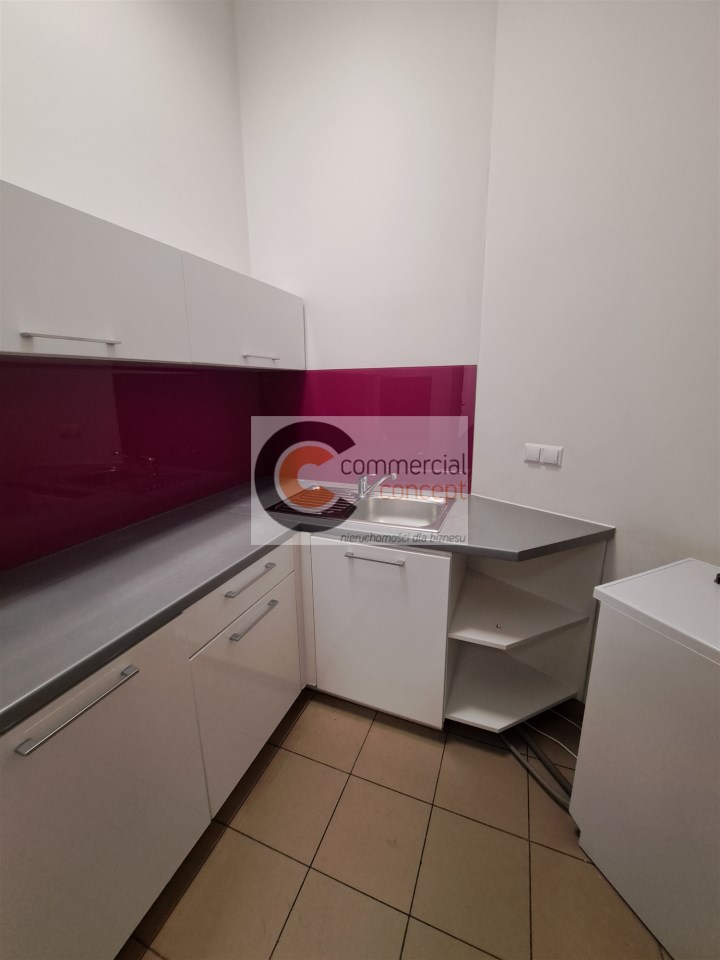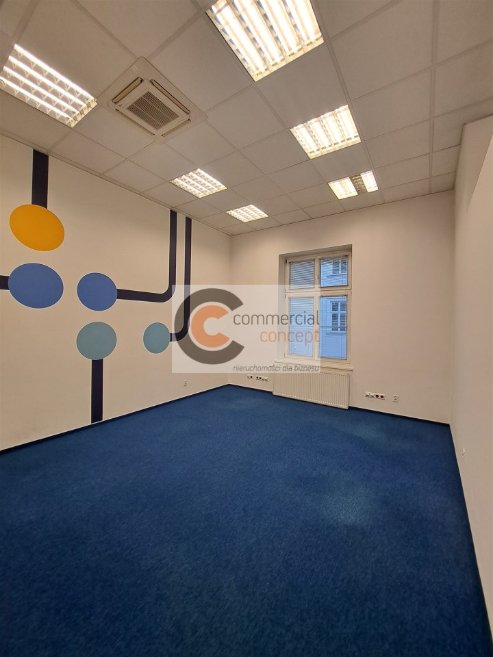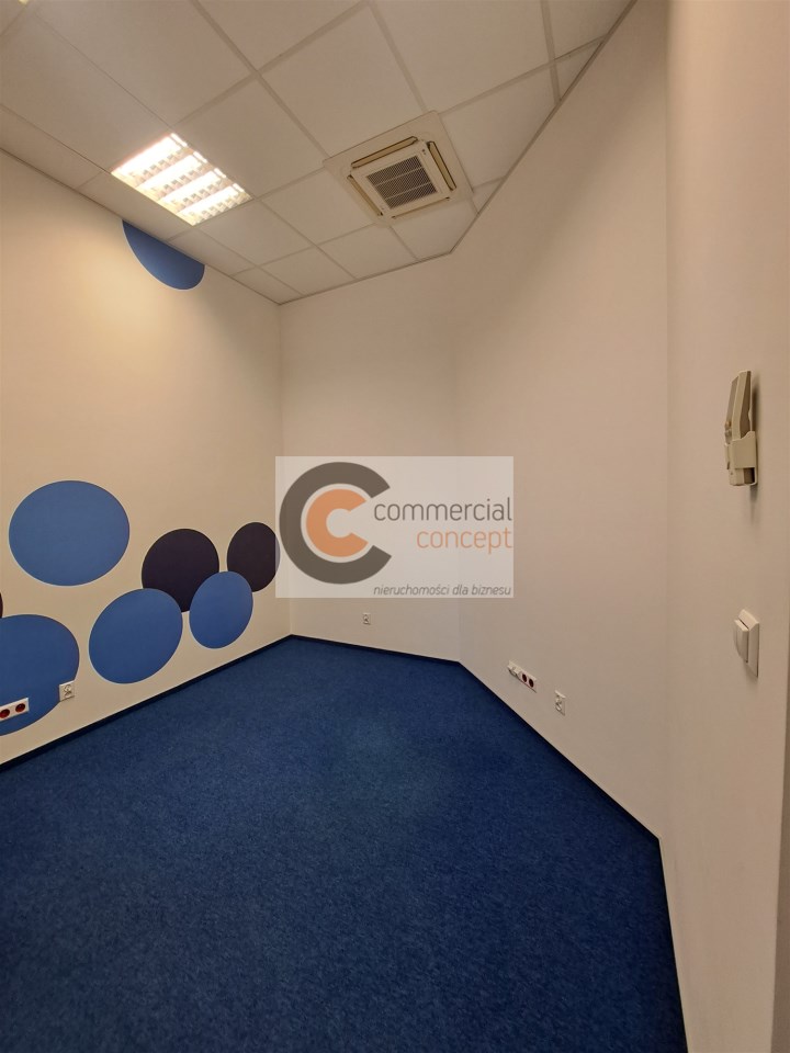 Lokal składa się z 5 pokoi biurowych, aneksu kuchennego oraz łazienki. Na podłodze wykładzina. Lokal o dwustronnej ekspozycji okien. Budynek chroniony i monitorowany. Wysoki standard, winda w budynku.
